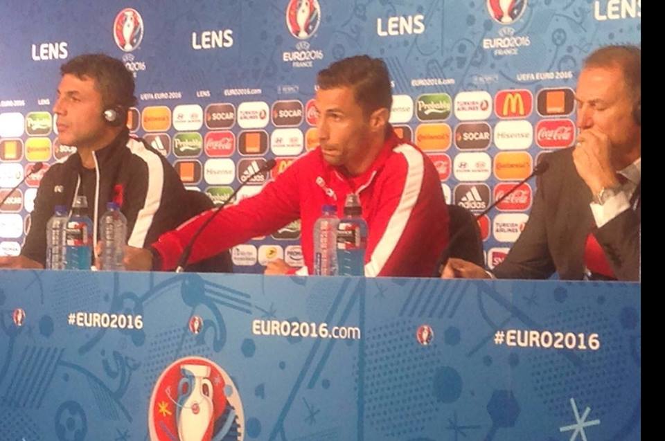 Trajneri i Kombëtares Shqiptare, Giani De Biasi u shfaq në konferencën për shtyp para ndeshjes me Zvicrën përkrah kapitenit Lorik Cana. Duke folur para mediave në Lens një ditë para ndeshjes debutuese të finaleve të Evropianit, trajneri kuqezi vlerësoi arritjen e skuadrës dhe shprehu bes...