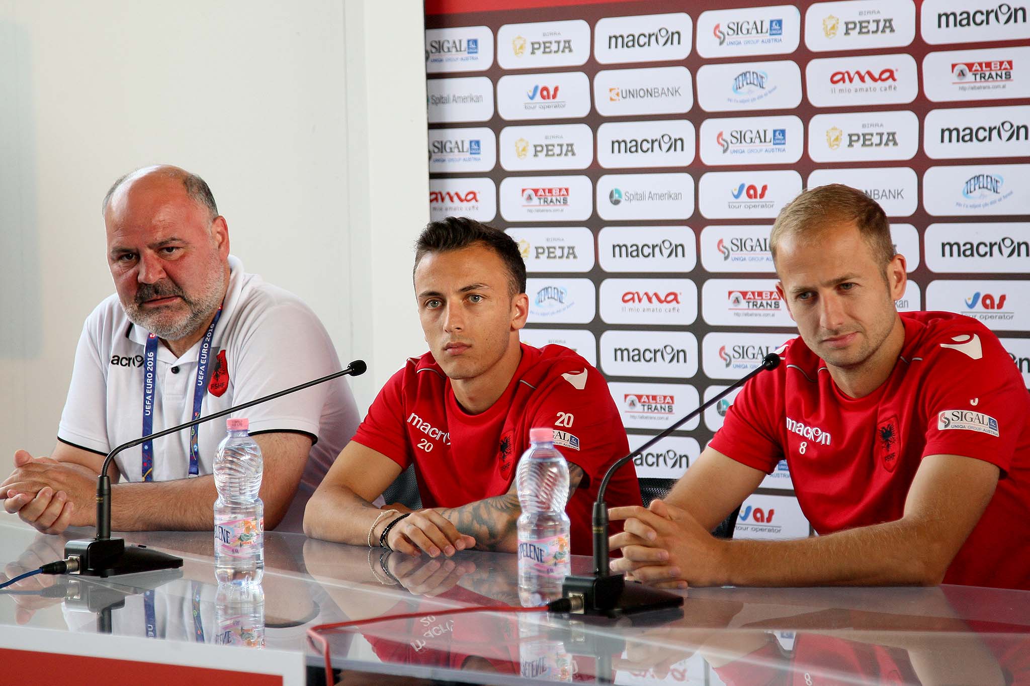 Migjen Basha dhe Ergys Kaçe kanë qenë sot në konferencën për shtyp të rradhës të organizuar në kompleksin sportiv në Perros Guirec. I pari ka folur Migjen Basha: “Edhe pse kam luajtur per skuadrat e moshave te Zvicres, endrra ime ka qene te luaj per kombetaren ...