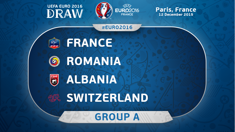 Kombëtarja shqiptare e futbollit, ka njohur kundërshtarët e saj në Grupin A, në finalet e Kampionatit të 16 Europian, që do të zhvillohet nga 10 qershori deri më 10 korrik në Francë në vitin 2016. Ata do të jenë Franca, organizatore e Europianit, Rumania dhe Zvicra. Ceremonia e shortit është zhv...