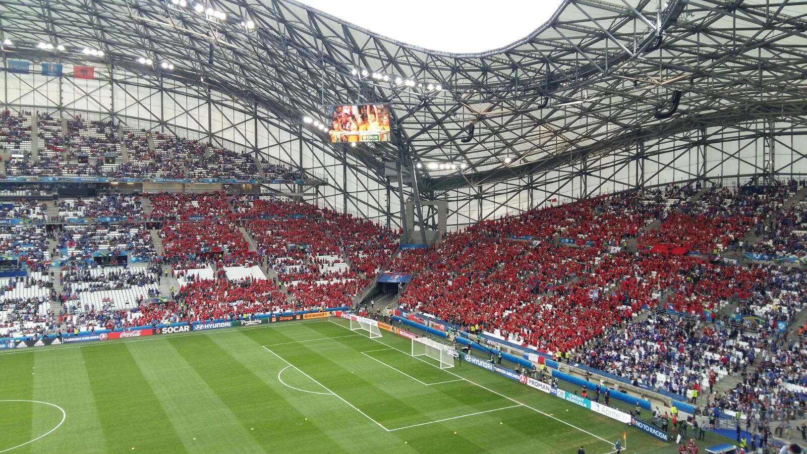 Në qytetin e Marsejës, që të martën mbrëmë janë vënë re grupe të mëdha shqiptarësh që dalloheshin shumë lehtë veshur me fanellat e Kombëtares shqiptare dhe me simbolet kuqezi.