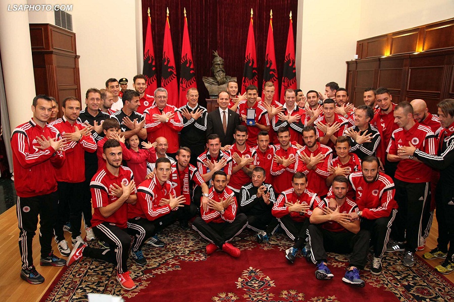 Kryeministri i Republikës së Shqipërisë, Edi Rama, priti në ambientet e Kryeministrisë ekipin kombëtar të Shqipërisë dhe krerët e Federatës Shqiptare të Futbollit. Pëprara selisë së kreut të Qeverisë Shqiptare dhe përgjatë gjithë bulevardit “Dëshmorët e Kombit”, me mijra qyt...